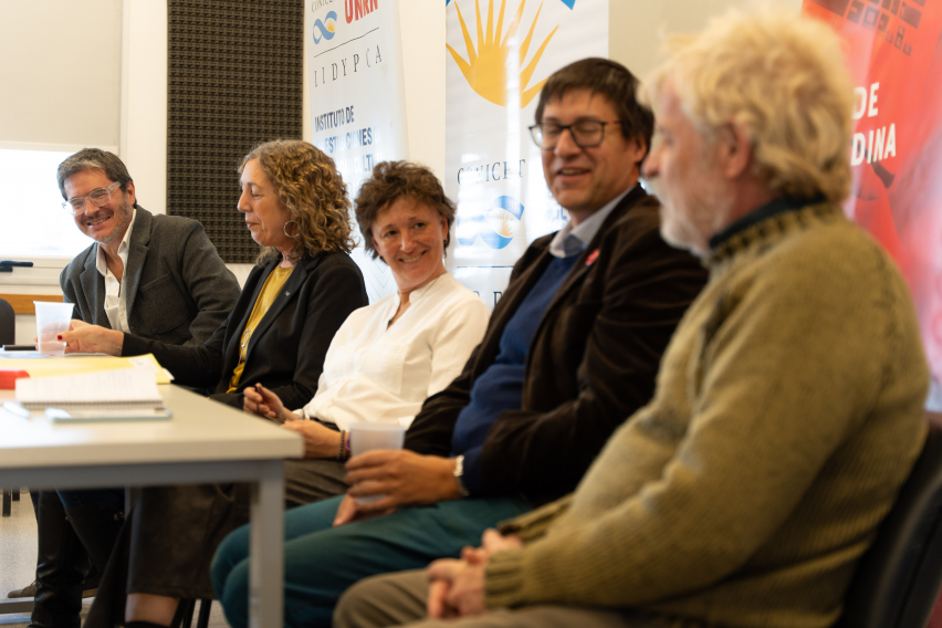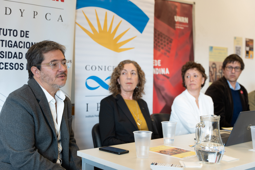 Luego, Verónica Trpin, directora del IPEHCS, explicó que esta “es una invitación y desafío para advertir las diferentes aristas desde los cuales los dos institutos hemos estado trabajando en torno a las temáticas que se relacionan con la desigualdades. Y me parece que también el desafío es advertir desde los territorios las estrategias de resistencia y organización colectivas derivadas de las apropiaciones y procesos de despojos territoriales sobre las memorias, sobre las nociones del tiempo”.